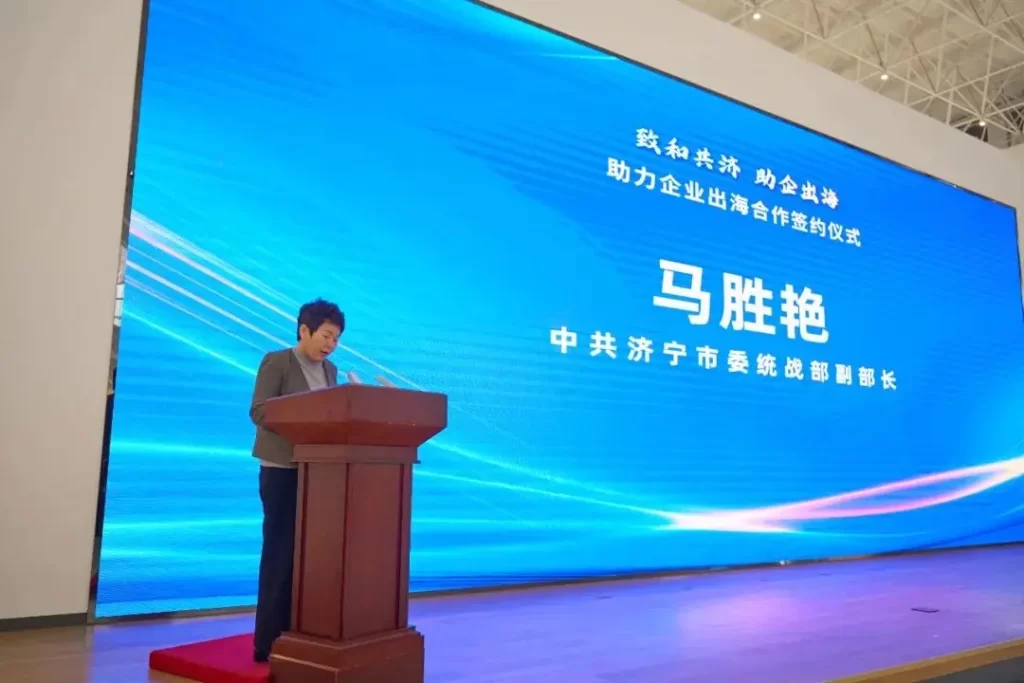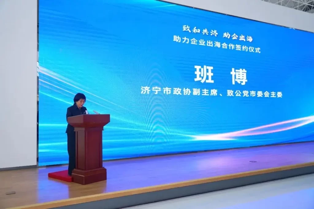 10月31日上午,由致公党济宁市委会主办,兖州工业园区与易运盈联合承办的“致和共济 助企出海”助力企业出海战略合作签约仪式,在兖州中欧国际合作产业园1楼展厅顺利举行。致公党山东省委会秘书长曹春、中共济宁市委统战部副部长马胜艳、致公党济宁市委会主委班博等领导和企业代表约100人出席。