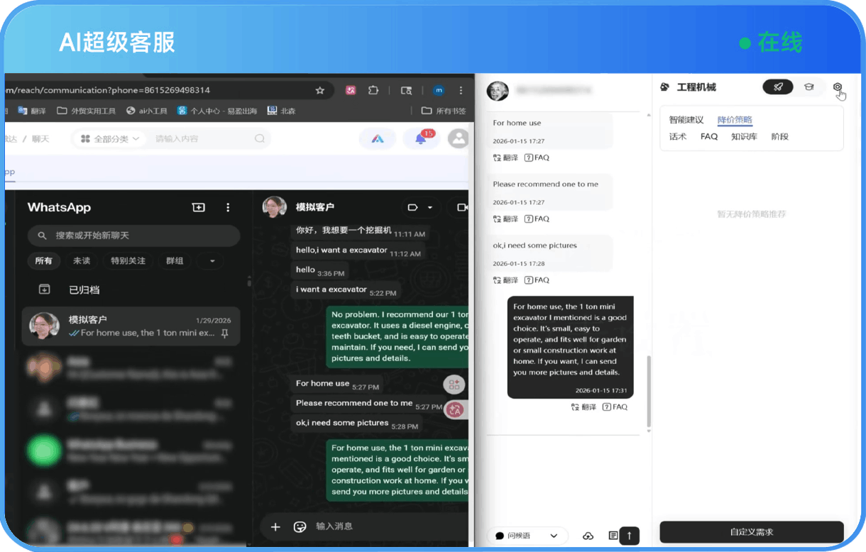以前培养一个外贸员要15万/年,现在新人3天就能接大单。Al客服比我们老业务员还专业,客户问的专业问题都能秒级精准回应。